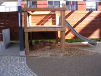 Aufenthalts- und Spielbereich. Ein Hofbaum
