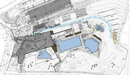 Die Belagsflächen der Beckenumgänge, der Restaurantterrasse und des Eingangsbereichs entwickeln